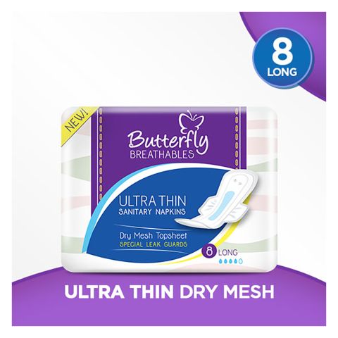 Butterfly Breathables Ultra Thin Sanitary Napkins, Dry Mesh Topsheet, Large, 8 Pads
