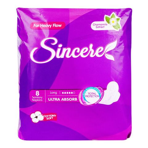 Sincere Ultra Thin Long Sanitary Napkins, 8-Pack